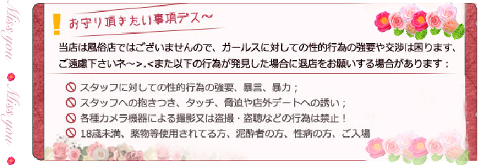 期待の新人ゆきちゃん(23歳)入店しました! お肌が透き通るような白くきめの細かい美肌の持ち主です。性格は愛らしくかわいらしいです。見てるだけで癒されてしまうほどの美しさです。日本語を上手に心から癒して温まる、指名のお客様お待ちしております。☆☆ |
